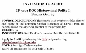 “Disciples Home Missions (DHM) seeks to support ordained and commissioned clergy in their commitment to a process of life-long learning. Those who take advantage of available educational experiences often discover that there are benefits of such experiences for themselves and the people with whom they are in ministry.” -Disciples Home Missions